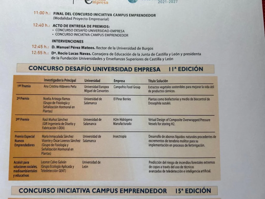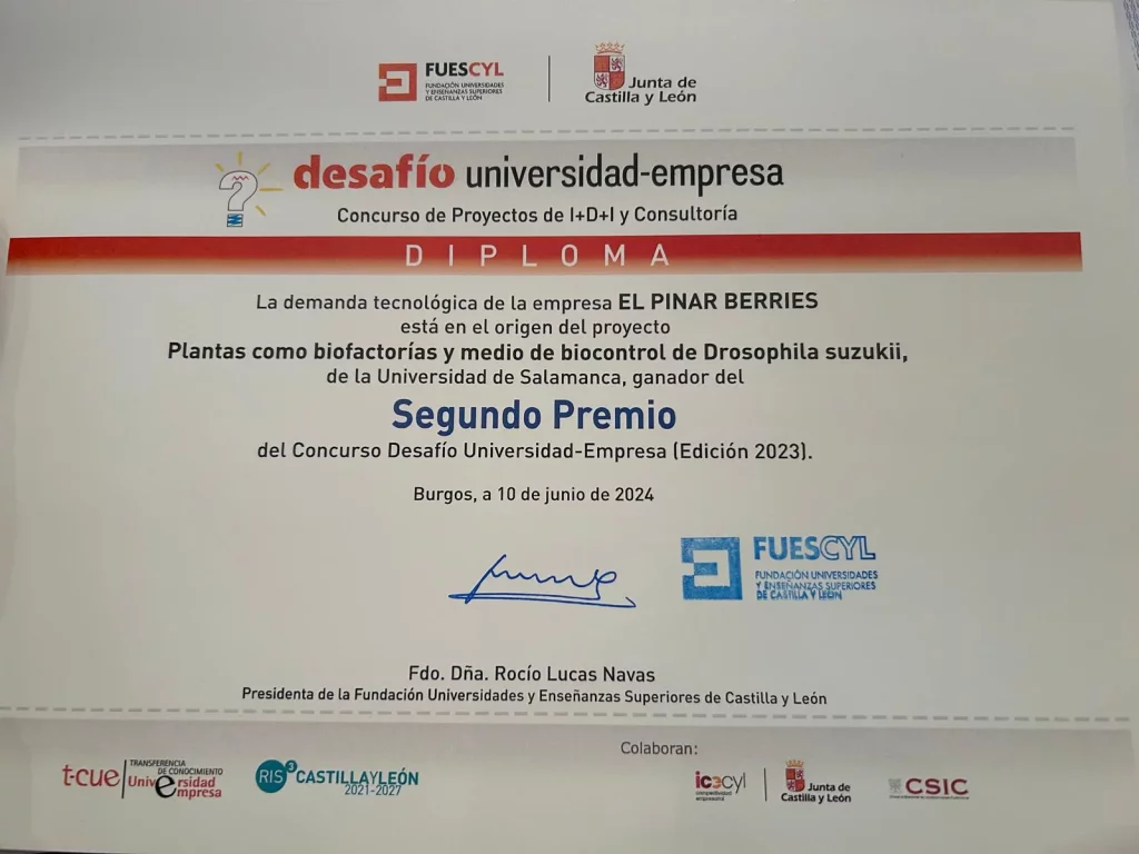 Enfocados en desarrollar un control biológico respetuoso con el medio ambiente, este premio ha supuesto un punto de inicio para la ejecución del proyecto, poniendo así, en valor, la importancia de una conexión entre empresas e investigadores de las universidades e institutos de investigación de Castilla y León.